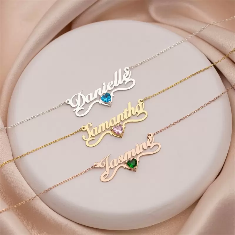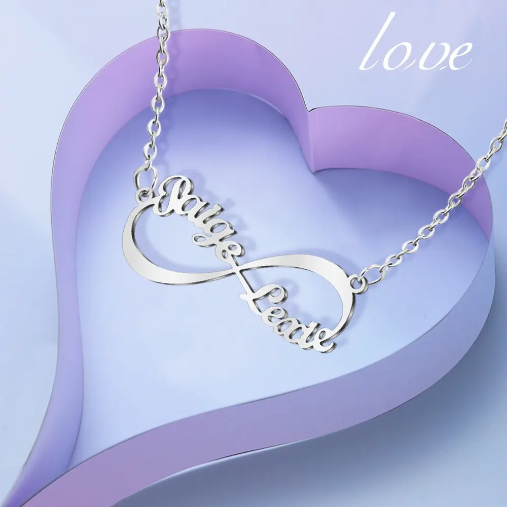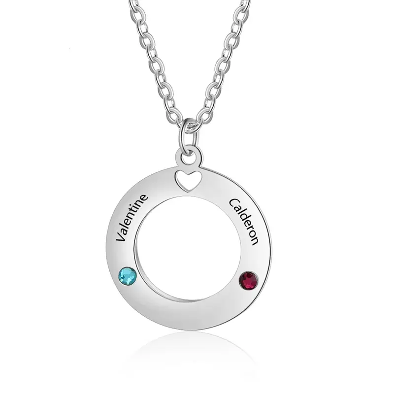 Eternal Circle Two-Name Necklace with Dual Birthstones