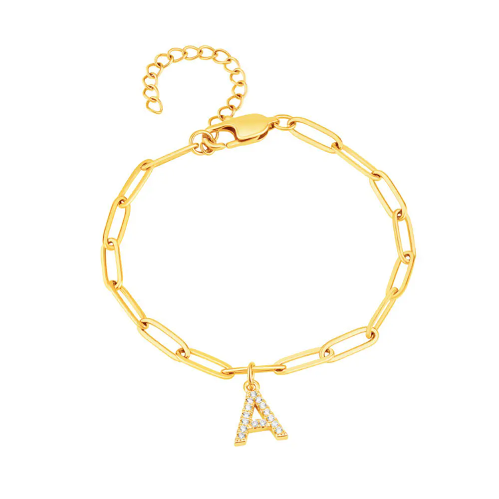 Personalized Initial Paperclip Bracelet – Dainty 26 Letter Charm Link Chain – Waterproof Everyday Jewelry