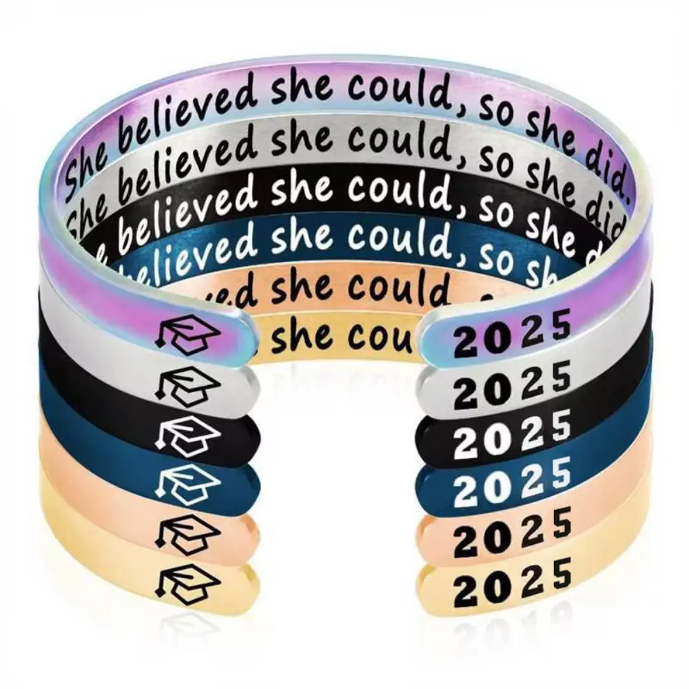 Custom Engraved Message Cuff Bracelet – Personalized Mantra Bangle – Graduation Class Keepsake Jewelry
