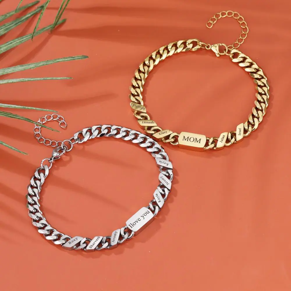 Custom Family Name Bracelet – Engraved Curb Chain Jewelry Gift for Her