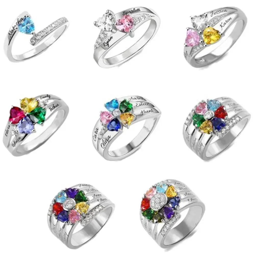Personalized Family Promise Ring – Custom 1-8 Names & Heart Gemstones