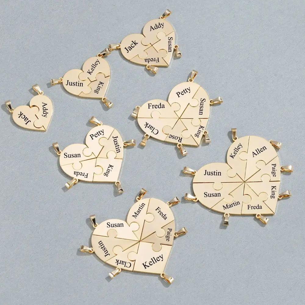 Celebrate the unbreakable bond that keeps your inner circle together. Our Personalized Heart Puzzle Necklace Set is designed for those who share a piece of each other’s hearts. When separate, each piece is a stylish individual pendant; when brought together, they form a perfect, unified heart. Whether for a group of best friends, siblings, or a dedicated team, this set symbolizes that you are never truly apart.
