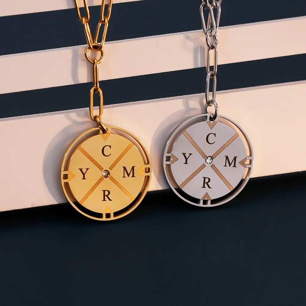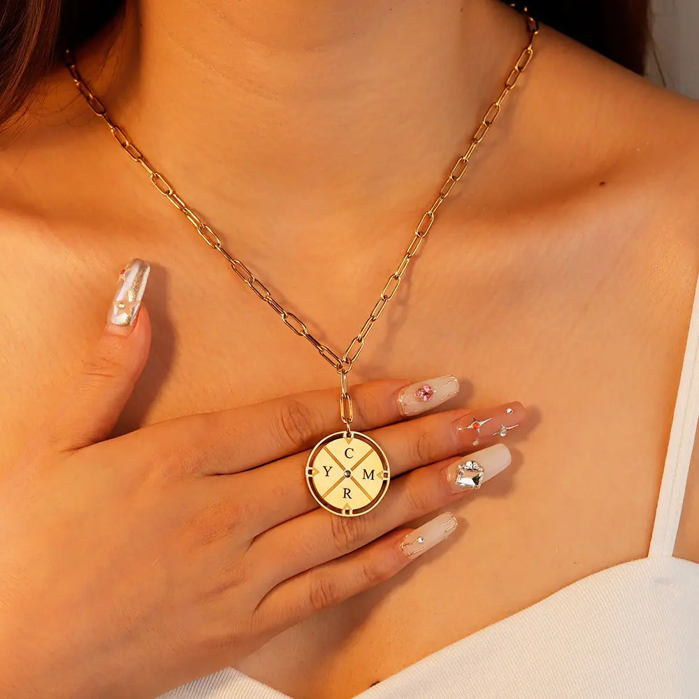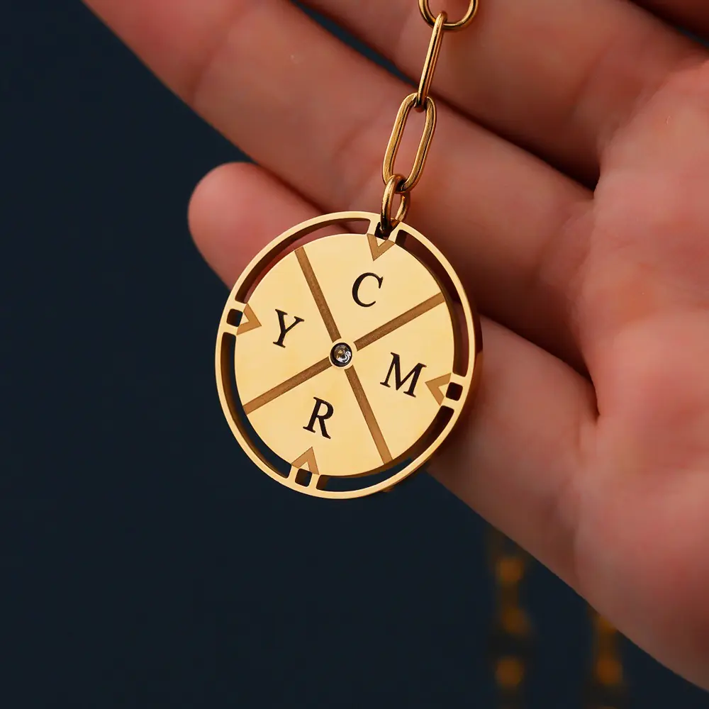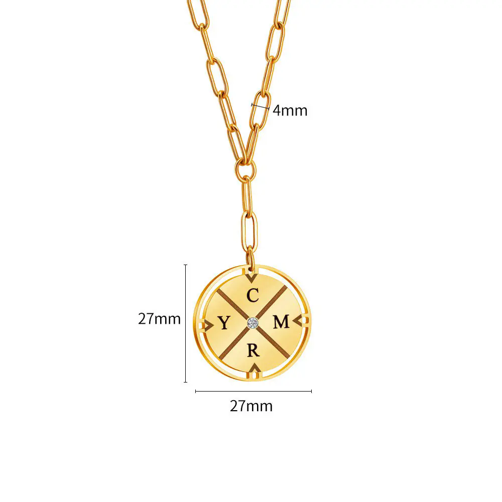 Navigate life’s journey with a piece of jewelry that tells your unique story. Our Custom Engraved Compass Necklace allows you to personalize the four cardinal points with meaningful initials, dates, or even GPS coordinates. Whether it’s the initials of your loved ones (like C-Y-M-R), a special anniversary, or the location of your favorite memory, this pendant becomes a constant reminder of what guides you.