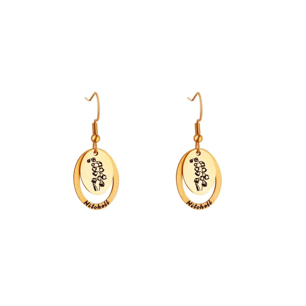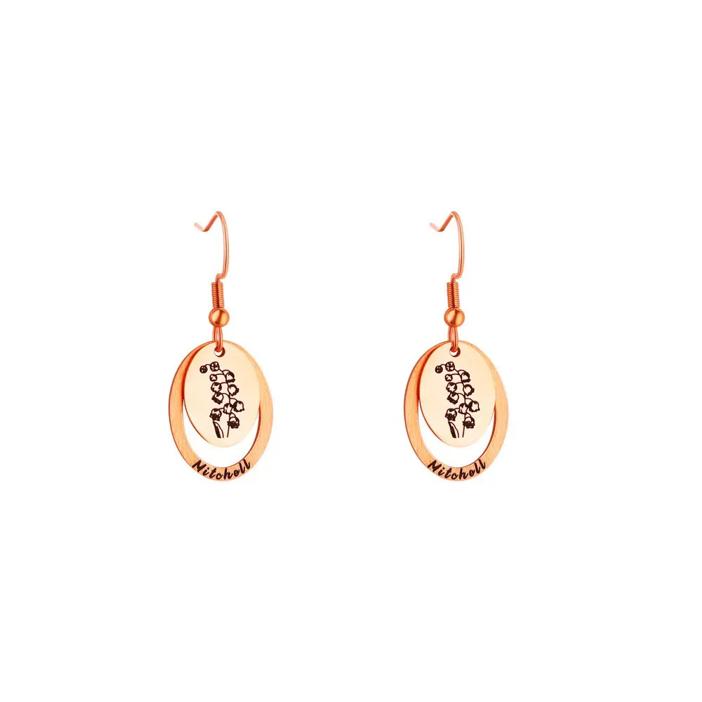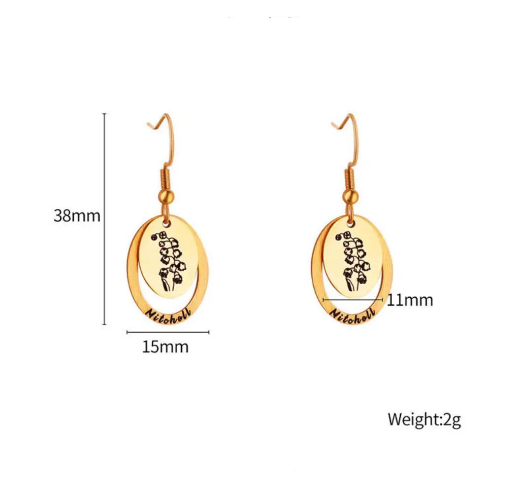 Celebrate your unique story with our stunning Personalized Birth Flower Name Earrings. These elegant oval dangles combine the timeless beauty of nature with a personal touch that is uniquely yours.