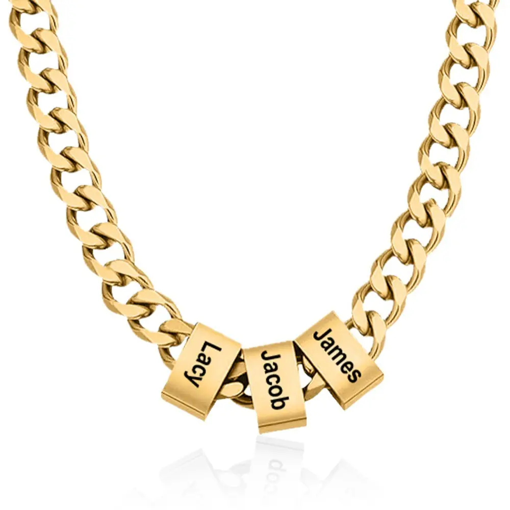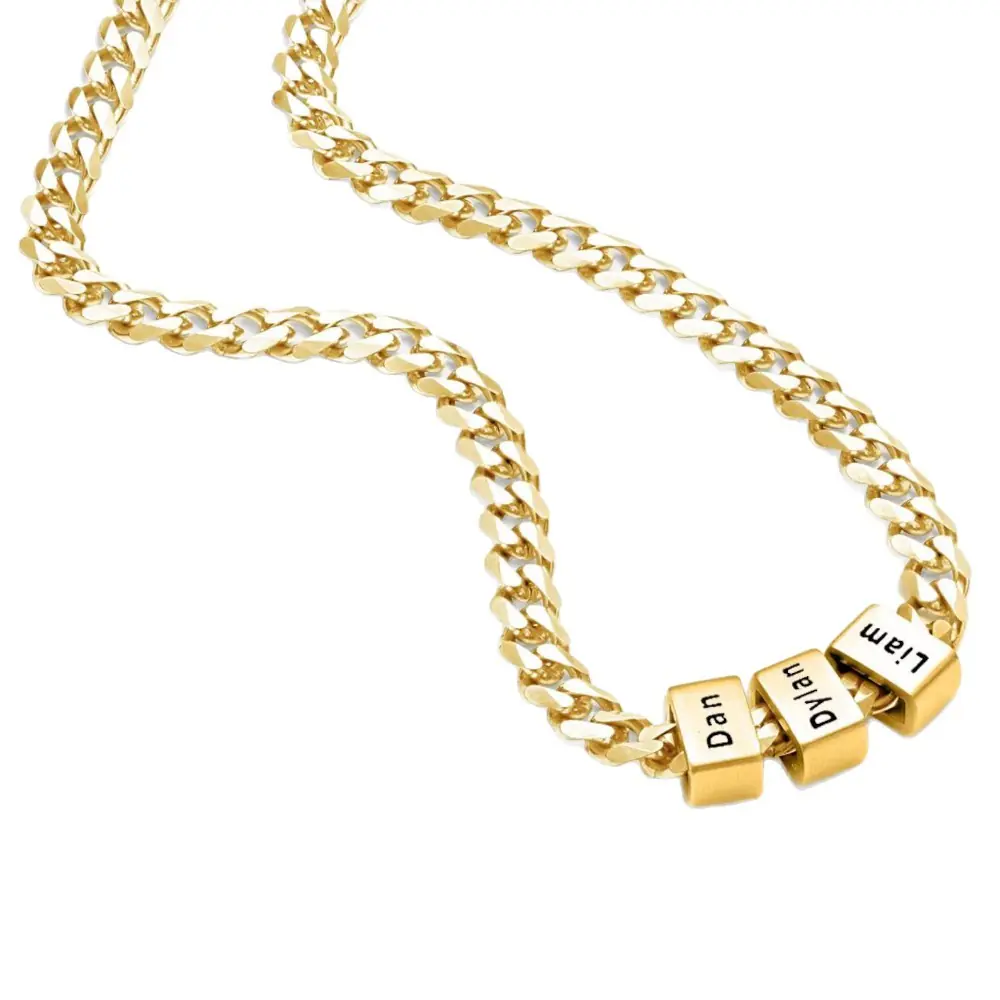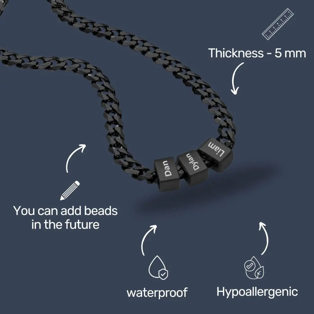 Give him a reason to carry his family’s love wherever he goes. Our Men’s Custom Curb Chain Name Necklace is designed for the modern man who values both style and sentiment. Featuring a bold, classic curb link chain and personalized beads engraved with the names of his children or loved ones, this piece is more than jewelry—it is a powerful symbol of his most important bonds.